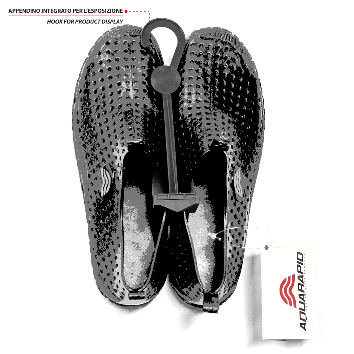 Beach and pool shoes designed by Aquarapid. Transparent , made in phthalate-free PVC, for a unique soft fit. Soles with nonslip grip, quick drying, also suitable for rocks.