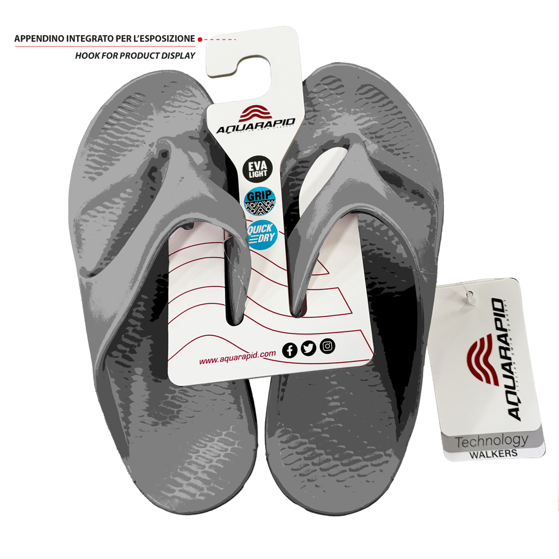Women''s pool and beach sandals by Aquarapid, made in EVA LIGHT - V-STRAP - ONE PIECE. Extremely lightweight, soft and comfortable. Raised heel for enhanced posture. Quick drying. Non-slip sole.